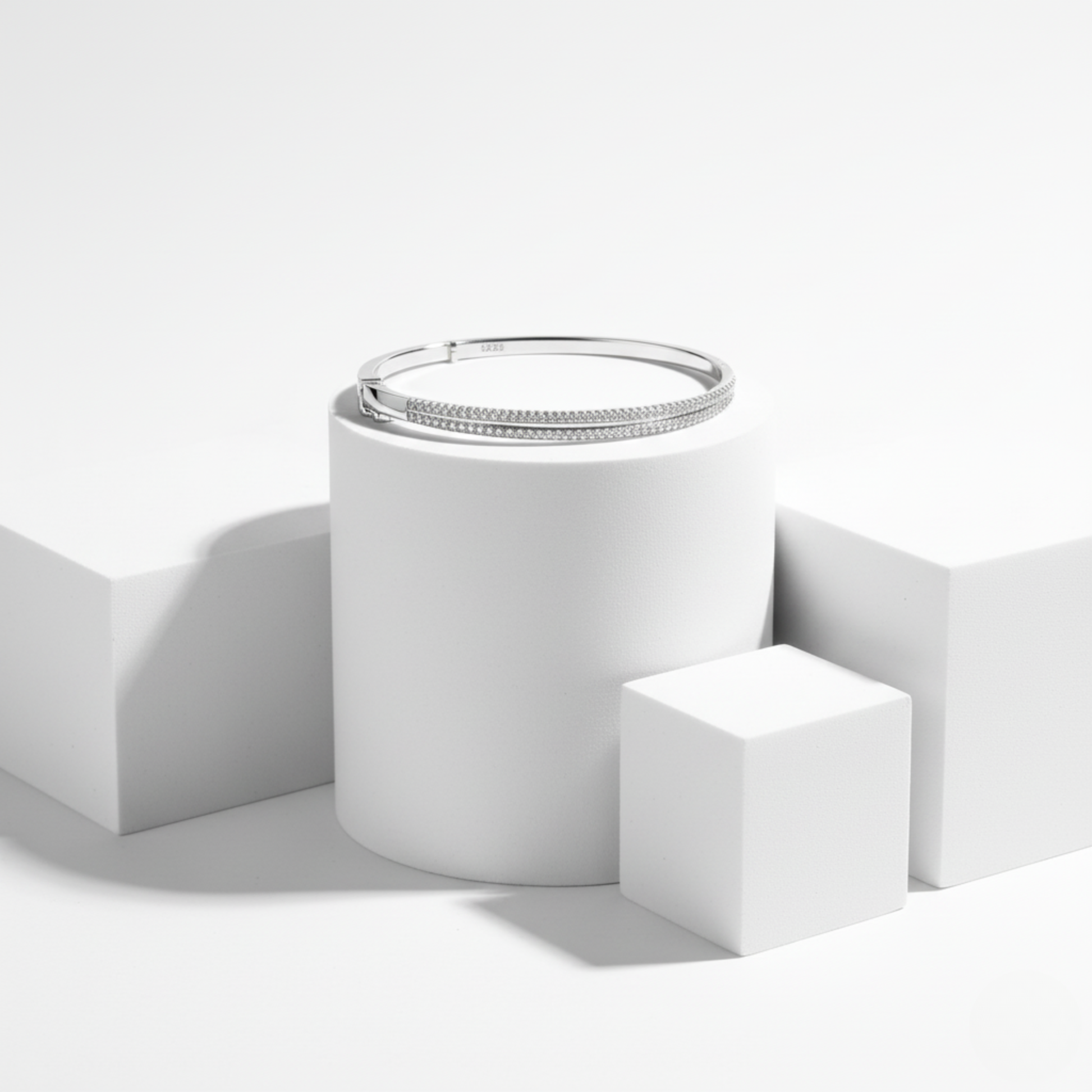 An essential design for everyday luxury, this rigid bracelet features two parallel lines of micro-pave stones. The result is continuous, high-impact sparkle perfect for wearing alone or stacking.