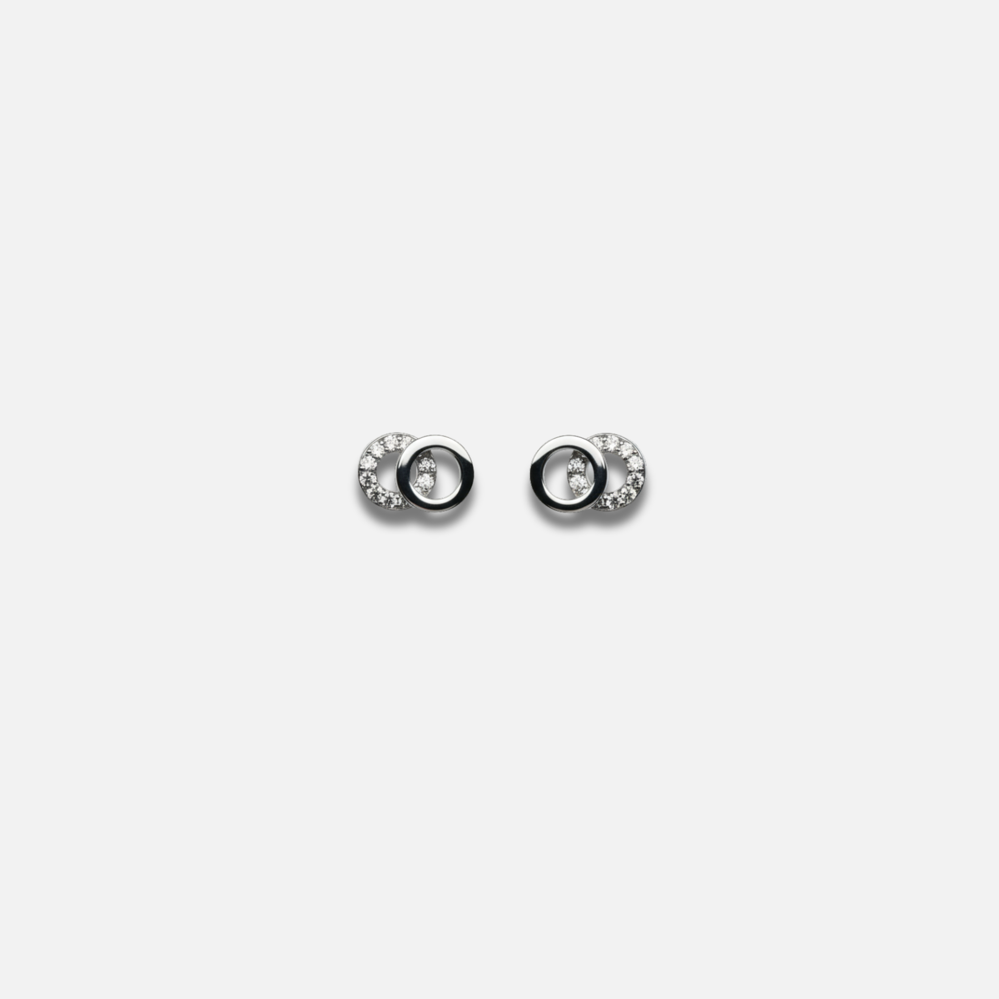 Contemporary elegance is here. These Duo-Circle Studs feature one smooth Sterling Silver loop entwined with a brilliant pavé simulated diamond circle for striking contrast and sparkle.