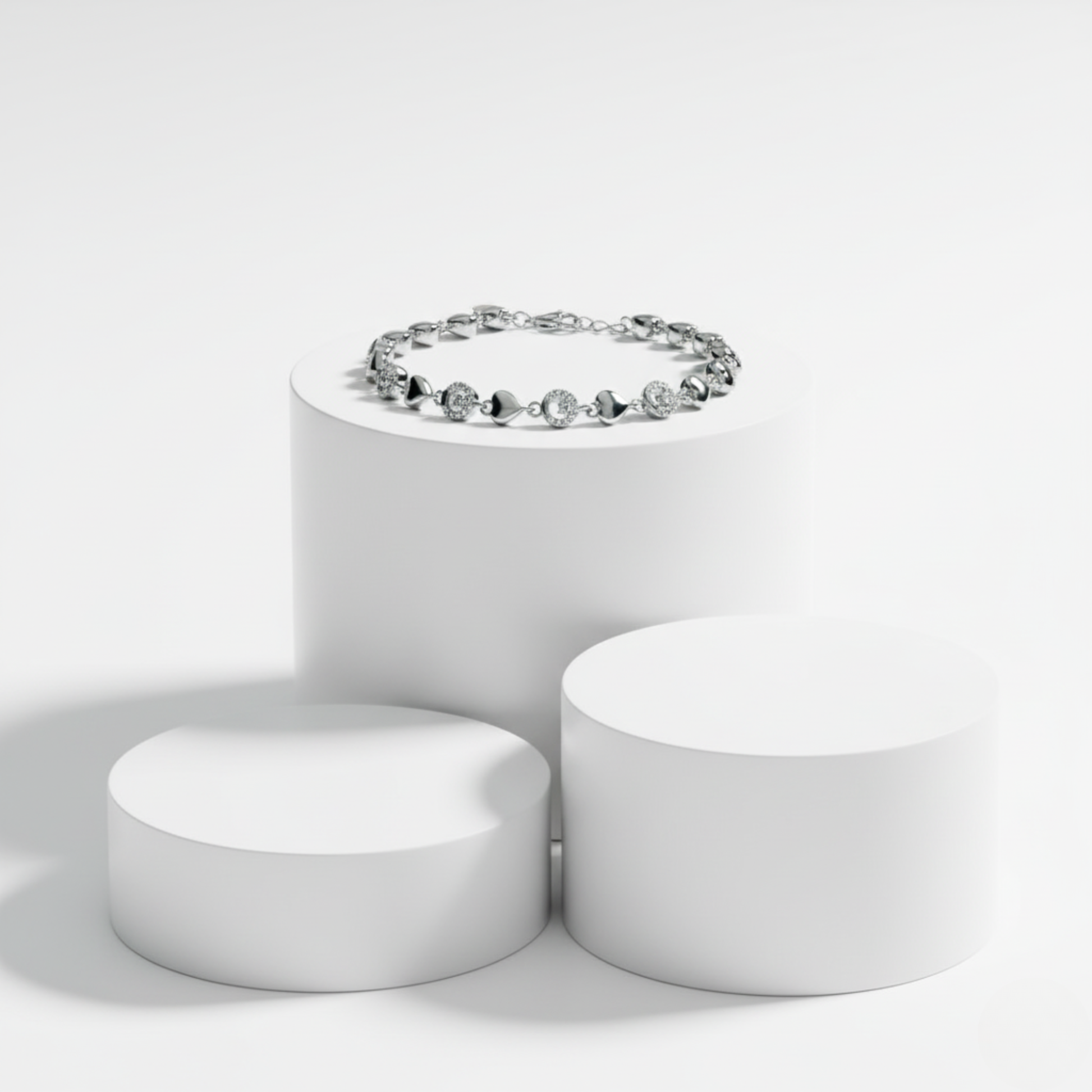 Celebrate endless love with this charming link bracelet. Polished heart motifs alternate with brilliant micro-pavé clusters, creating a beautiful, continuous sparkle that's perfect for romantic gifting.