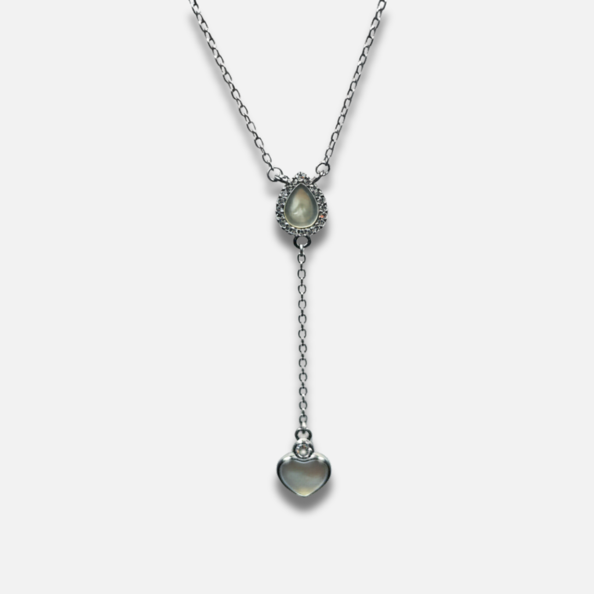 Redefine modern romance with this Sterling Silver Lariat. An iridescent Mother of Pearl teardrop, haloed by micro-pavé CZ, drops dramatically to a matching inlaid heart. Offers exquisite movement and grace.