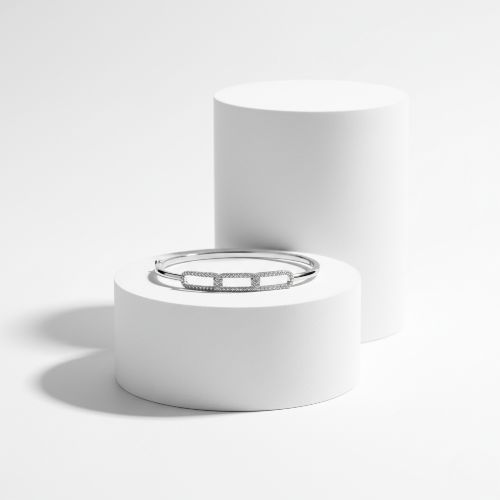 An essential piece of contemporary elegance, this bracelet features a stunning three-link motif paved with brilliant stones. The perfect design to elevate your modern daily style.
