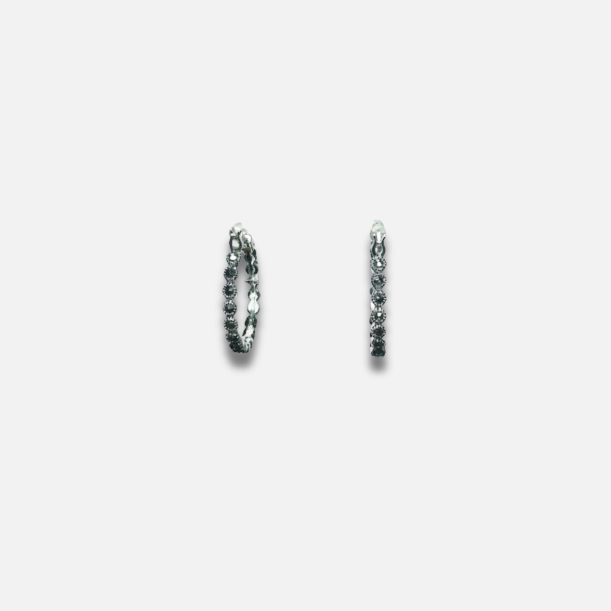 These minimalist Sterling Silver huggie hoops deliver maximum radiance. The slender band features a continuous row of premium pavé CZ, capturing light with fire and brilliance for modern, comfortable sophistication.