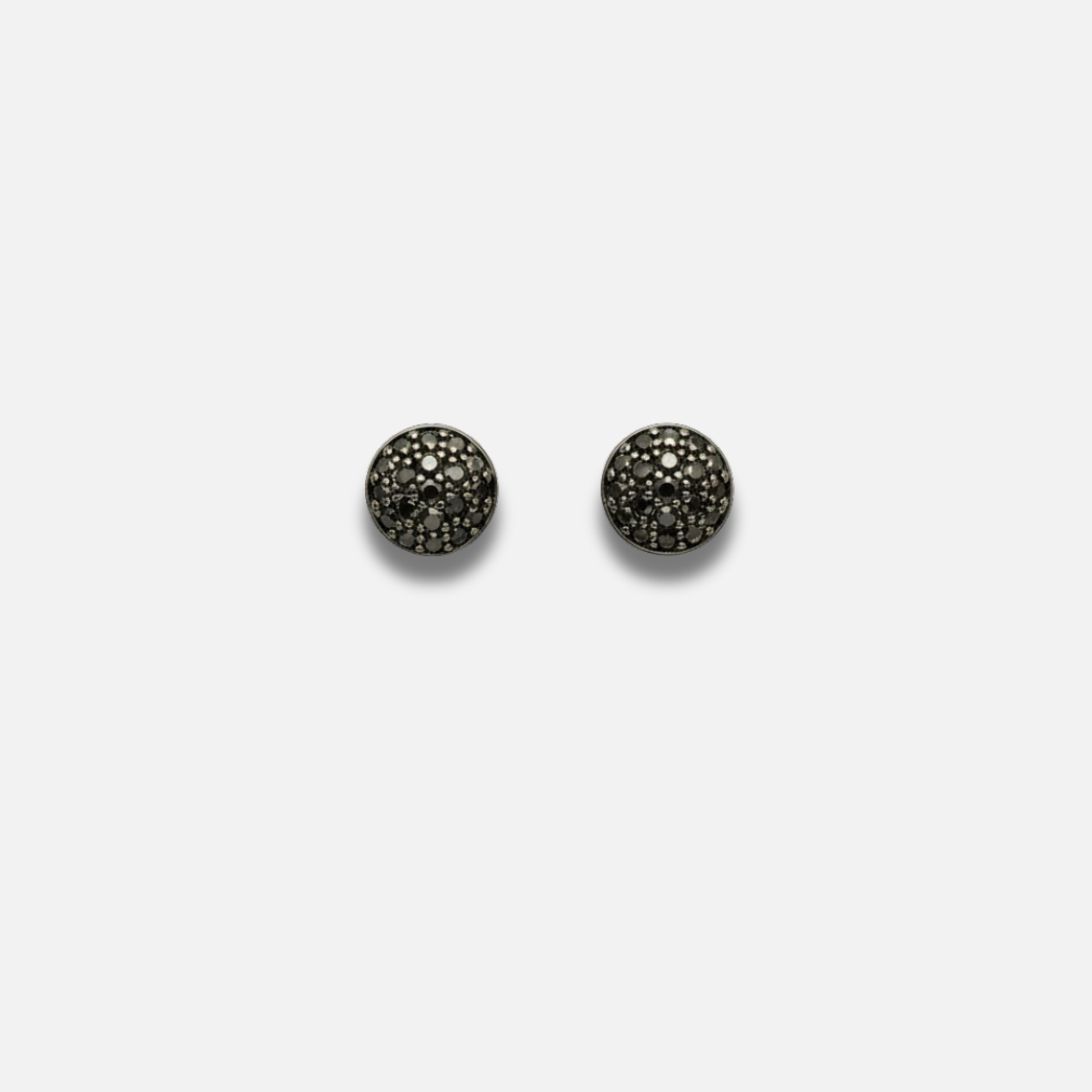 These high-quality Sterling Silver studs feature a striking dome shape completely adorned with meticulously placed black pavé stones. Delivers a powerful, modern edge and refined statement.