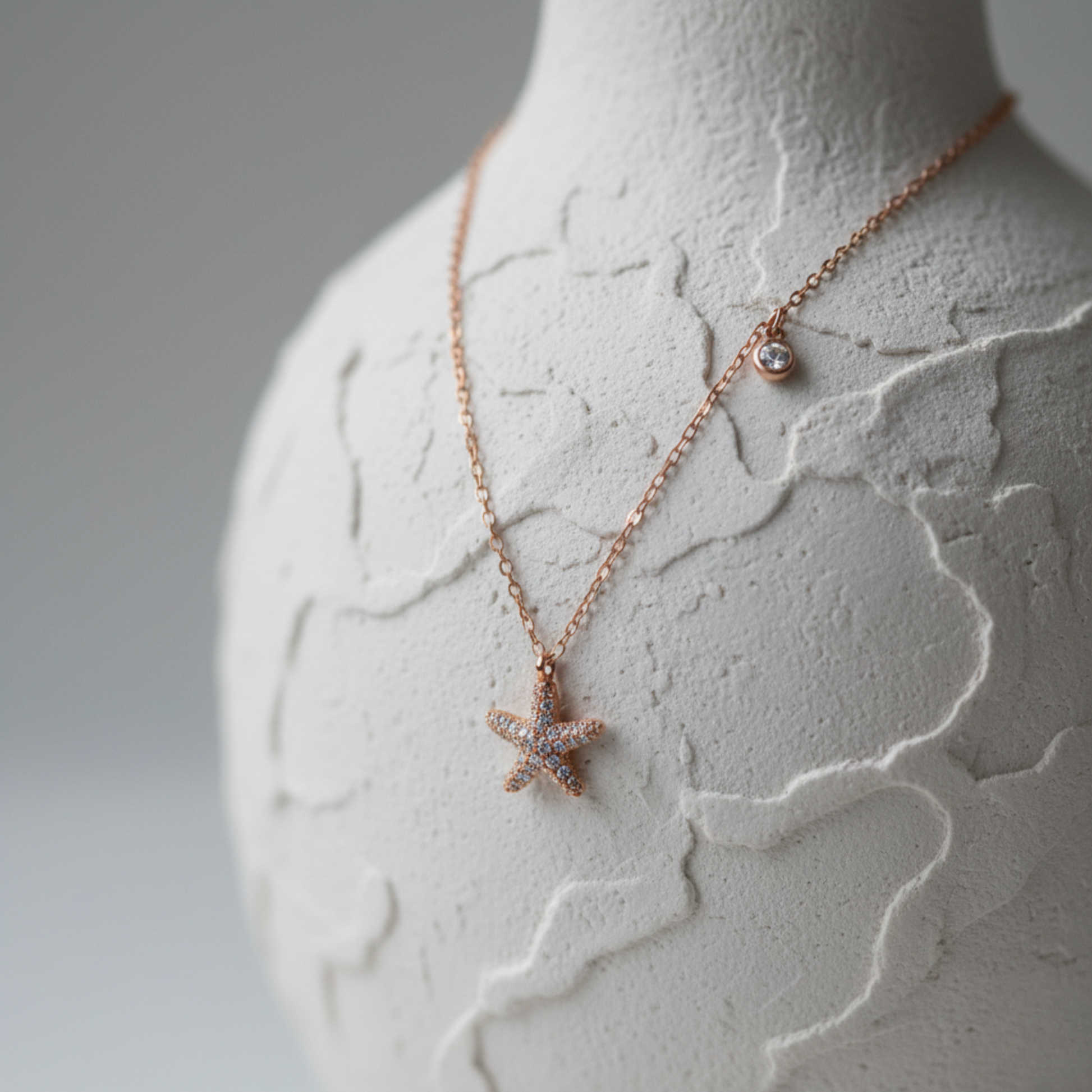 - Pendant Detail: Detailed Starfish silhouette (fully pavé set).