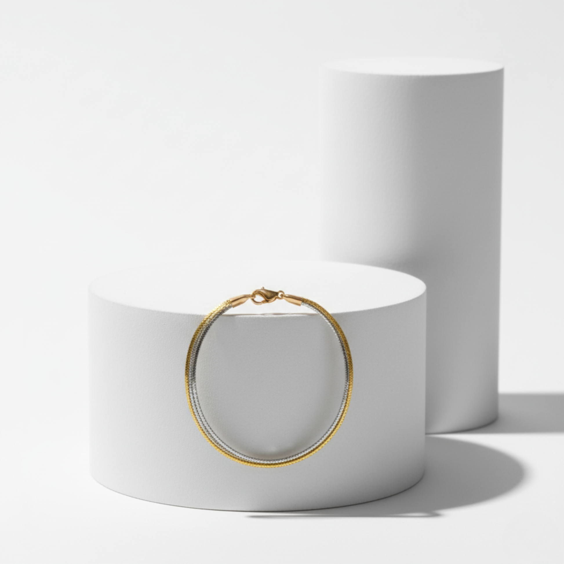 Experience everyday luxury with this dual-tone flexible bracelet, featuring three finely woven snake chains. The mixed metals offer effortless versatility for layering or wearing solo.